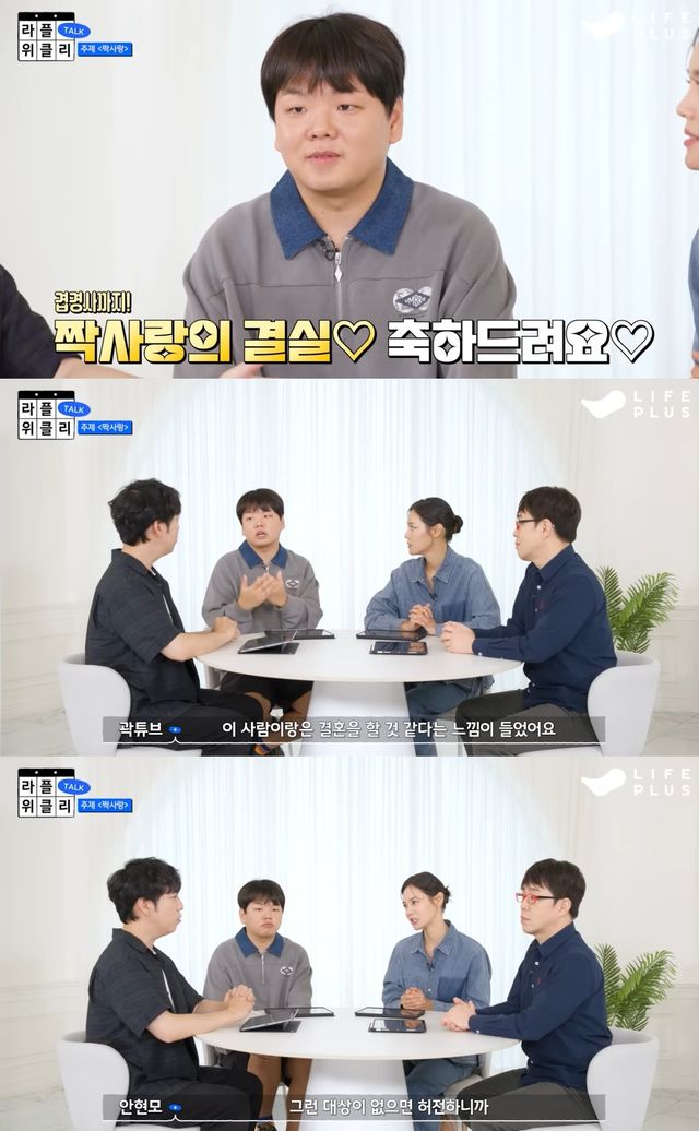 곽튜브는 "소개로 만났는데 보자마자 이 사람이랑 결혼할 거 같다는 느낌이 들었다. 또 바로 잘 이어졌다. 맞사랑이 됐다"며 달달한 면모를 내비쳤다.