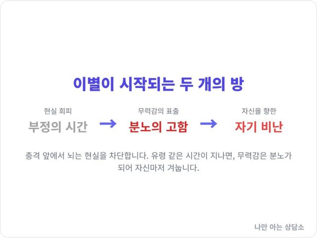 이 글은 고통을 건너뛰는 지름길을 알려주지 않는다. 대신 당신이 지금 이 황량한 감정의 영토 어디쯤에 서 있는지 알려주는 나침반이 될 것이다. 당신이 길을 잃은 게 아니라는 사실을, 이 모든 혼란이 지극히 정상적인 과정의 일부라는 사실을 아는 것만으로도 우리는 다시 걸어 나갈 최소한의 힘을 얻는다.