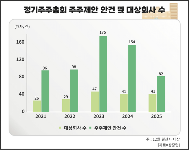 실제 한국상장회사협의회에 따르면 올해 정기 주주총회에서 주주제안이 상정된 기업은 41개사에 불과했고 이 가운데 가결된 안건은 10건뿐이었다. 임원 해임·정관 변경 등 단기 이슈가 60% 이상을 차지했으며, ESG·보상정책·지속가능경영 관련 제안은 거의 전무했다. 사실상 주주의 제안권을 제도적으로 막고 있는 셈이다.