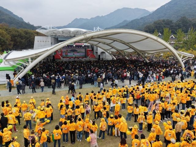 문경시는 27일 지난 18일부터 26일까지 문경새재도립공원에서 개최한 '2025 문경사과축제'에서 9일 동안 25억 3000만원어치의 감홍사과가 팔려나가며 사상 최고 매출을 달성했다고 발표했다. 같은 기간 46만여 명의 방문객이 다녀가며 최다 관람객 기록도 함께 세웠다.