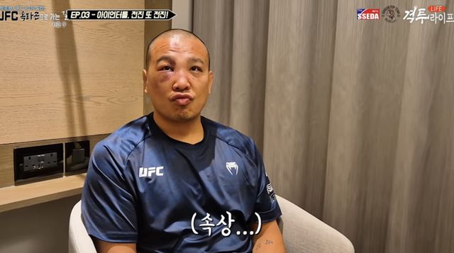 27일 코리안탑팀이 운영하는 유튜브 채널 ‘격투라이프’에 공개된 영상 속 박준용은 눈 주위에 멍이 들어 있었다. 그는 “타박상이어서 괜찮다”며 “많은 생각이 들고 있다”고 털어놨다.