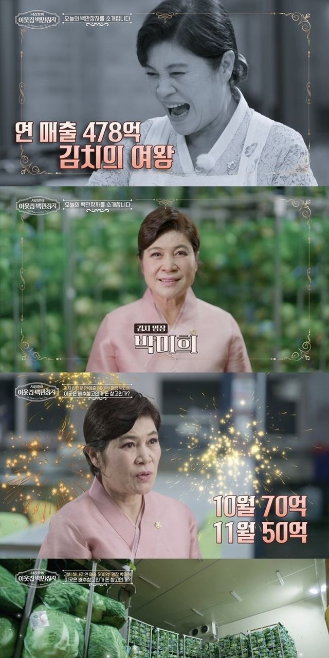 29일 오후 방송되는 EBS ‘서장훈의 이웃집 백만장자’(이하 ‘이웃집 백만장자’)에서는 손맛 하나로 대한민국을 제패한 연 매출 478억 원 ‘김치의 여왕’ 박미희의 영화 같은 인생 여정이 펼쳐진다. 박미희는 매년 김장철이 다가오면 매출이 폭발적으로 치솟는 ‘김장 연금’의 주인공이기도 하다. 10월 한 달에만 약 70억 원, 11월에는 50억 원가량의 매출을 기록하며 대한민국 김치 산업의 대표 주자로 자리매김했다.
