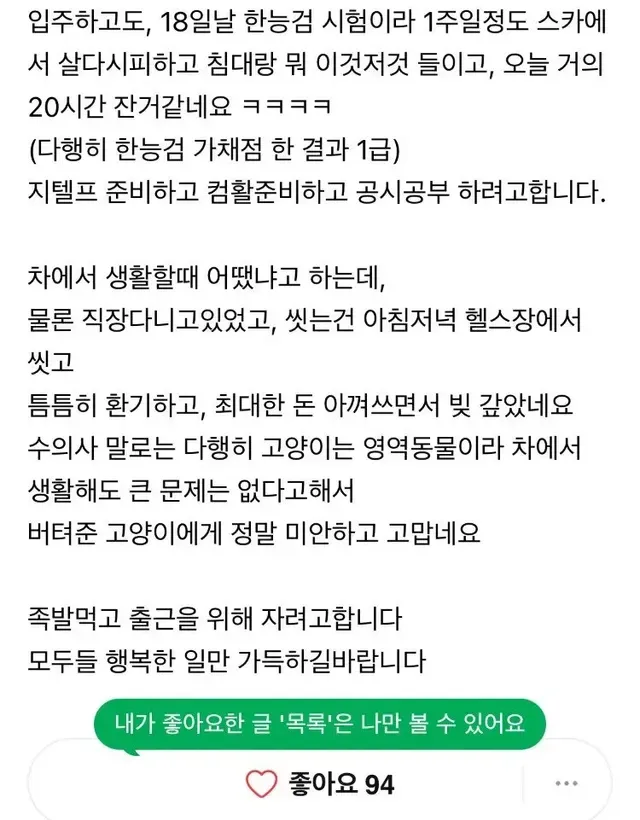 [스압] 전세사기 당한후 차에서 1년살고, 12일 입주함,,