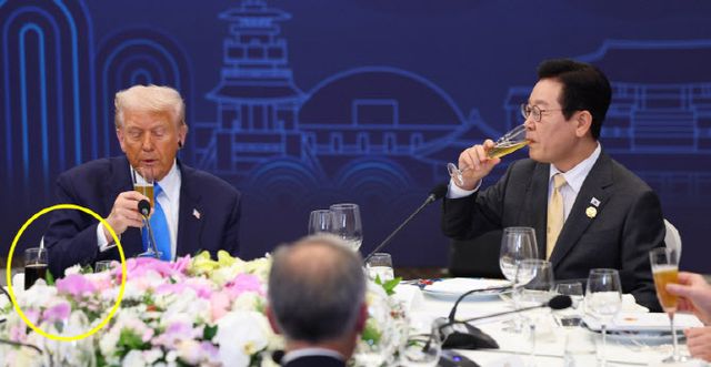 이날 정상들은 이 대통령의 건배 제의에 응하며 샴페인잔을 치켜들어 분위기를 고조시켰다. 이후 다들 한두 모금씩 마시고 식사에 들어갔는데 유독 트럼프 대통령 샴페인은 양이 줄지 않아 의구심을 자아냈다. 그는 샴페인을 입에 대는 시늉만 한 후 테이블에 도로 내려놨다.