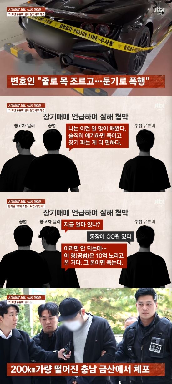 특히 피의자들은 수탉에게 "이런 거 많이 해봤다. 널 죽이는 게 편하다. 죽이고 장기 파는 게 편하다. 돈 얼마 있냐", "ㅇ억 정도? 그 정도 돈이면 죽는다"고 협박한 것으로 드러났다.