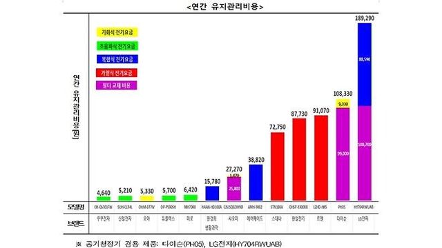 이는 하루 8시간, 월 30일, 6개월 사용을 기준으로 전기요금과 필터 교체 비용을 합산한 수치다.