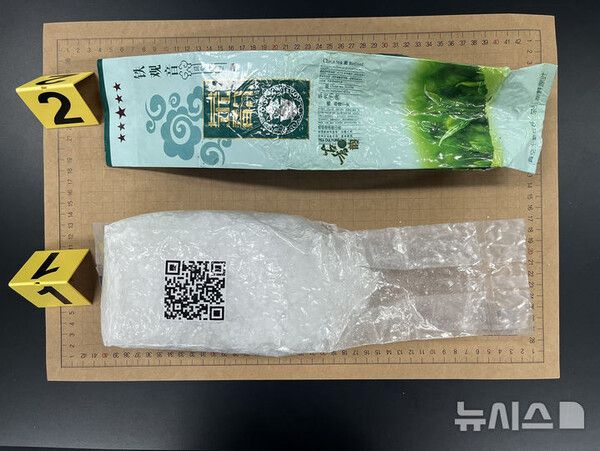 위장용 차 포장지의 경우 지난 15일 경북 포항 임곡리 소재 해변에서 발견된 마약류 의심 물질을 감쌌던 포장지와 유사한 것으로 파악됐다.