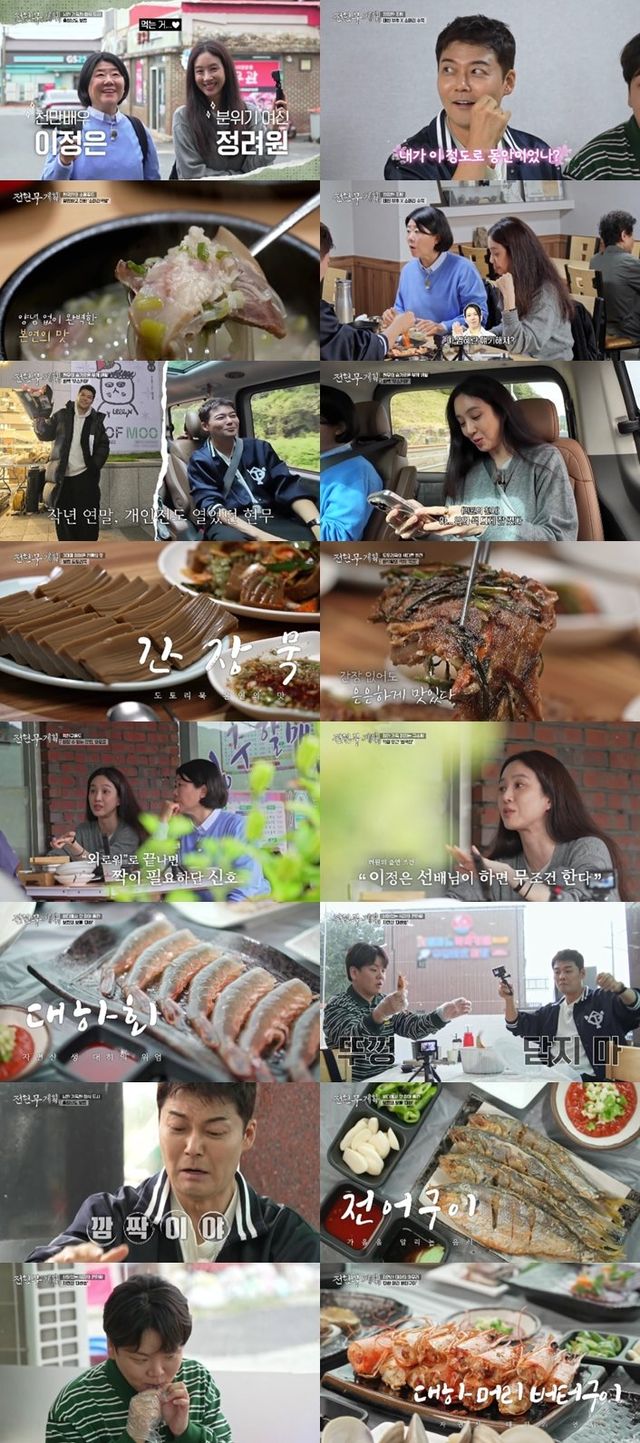 다음 코스로 이동하던 차안에서는 취미 생활에 대한 토크가 펼쳐졌다. 이때 진짜 화가로 활동 중인 정려원은 ‘무스키아(전현무 화가 부캐릭터)’의 작품을 검색해본 뒤, “색 되게 잘 쓰신다”고 리얼 극찬해 눈길을 끌었다. 잠시 후, 보령의 묵 요리 맛집에 도착한 네 사람은 “묵 요리는 종류별로 다 먹어보자”며 먹방에 박차를 가했다. 주문을 마친 뒤, 전현무는 ‘연기 경력 34년 차’ 이정은에게 “연극 오래 하셨죠?”라고 물었고, 이정은은 “오래 했다. 그땐 1년에 20만 원 벌었다”며 연극배우 시절 연봉을 밝혀 놀라움을 안겼다. 그러면서도 이정은은 “(연극배우 시절에 아르바이트로) 식당 일도 해봐서 (식당 직원) 어머님들과 대화가 좀 더 편하다”고 털어놨고, 전현무는 “그래서 생활연기가 되시는 구나”라고 감탄했다.
