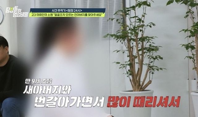 [TV리포트 = 하수나 기자] 계부와 친모의 학대 속에 자란 고3 소녀의 친부가 오히려 딸을 수년간 찾아 헤맸다며 충격적인 가족사를 공개한다.