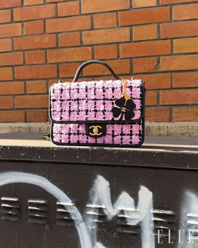 네 잎 클로버 참 장식의 트위드 플랩 백은 가격 미정, Chanel.