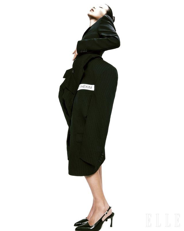 더블 블레이저 드레스는 4백85만원대, 슬링백은 가격 미정, 모두 Kimhekim.