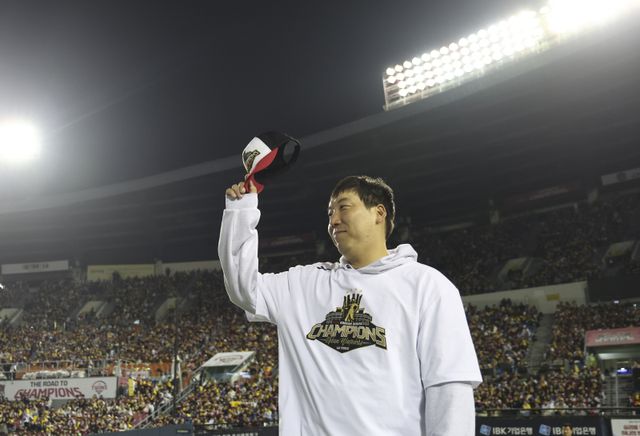 김현수는 앞서 장내 아나운서와 인터뷰 중에서도 KS 우승 후 눈물 흘린 이유를 묻자 "미래가 불투명해서"라고 말했다. 전날 최우수선수 수상 후 공식 인터뷰에서도 향후 거취에 관한 질문에 말을 아꼈다.