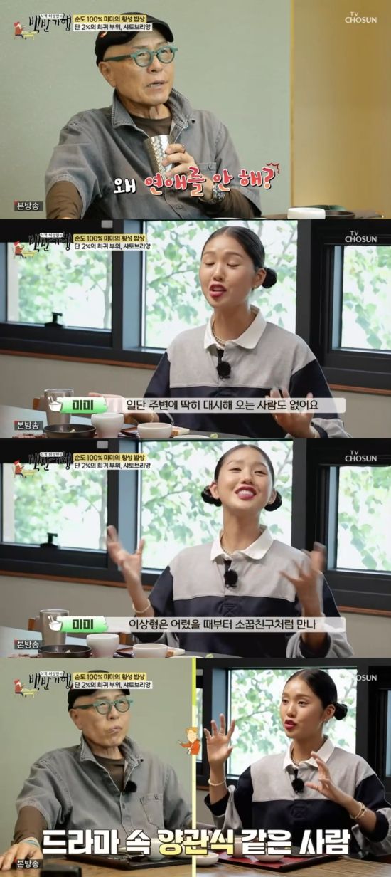 미미는 "그런데도 불구하고 이상형이 있을 거 아니냐"는 질문에 "어렸을 때부터 소꿉친구처럼 만나, 어렸을 때부터 서로를 속속들이 알고, 그렇게 자연스럽게 사랑하게 되지 않는다면 안 할 것 같다"고 답하며 "'폭싹 속았수다'의 양관식 같은 사람"을 이상형으로 꼽았다.