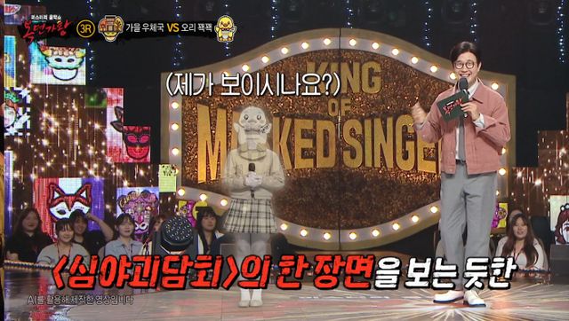 이날 3라운드에는 가을우체국의 '그립고 그립고 그립다'에 맞서 방송인 하지영, 가수 정유경을 꺾은 오리 꽥꽥의 '너랑 나' 무대가 펼쳐졌다.
