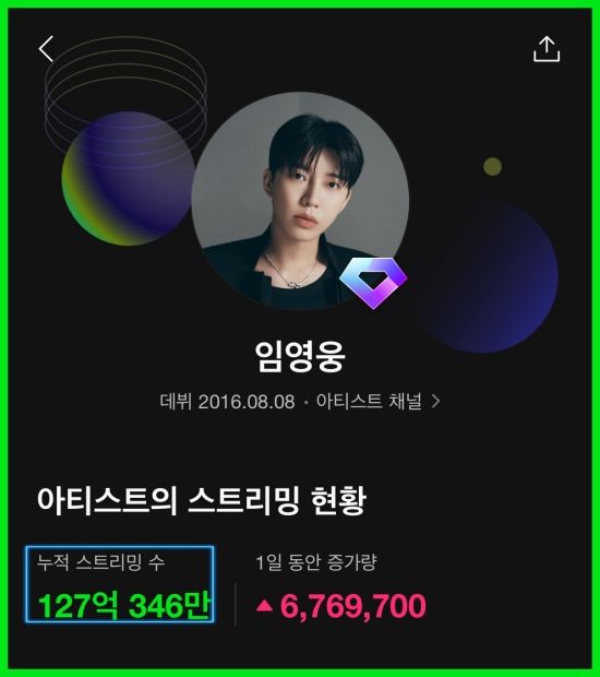 최근 임영웅은 음원사이트 멜론에서 누적 스트리밍 127억 회를 돌파했다.
