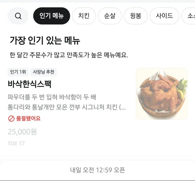 인기메뉴는 그냥 신나게 털리고 있음