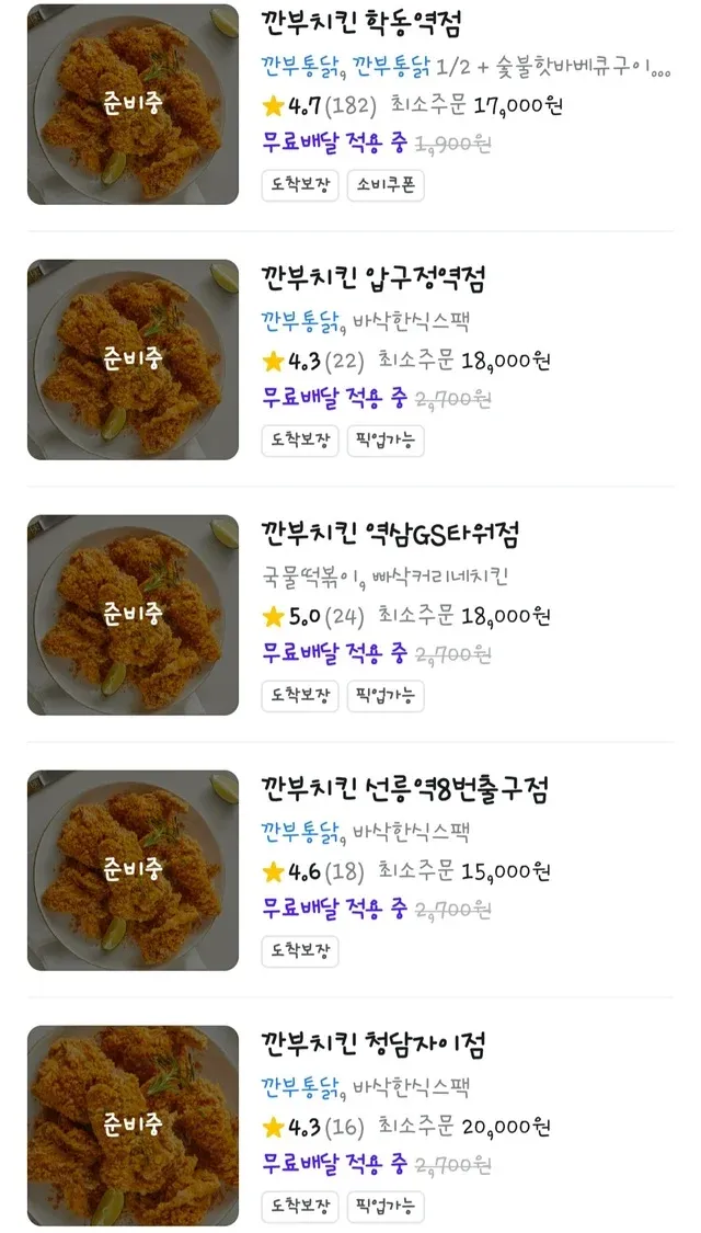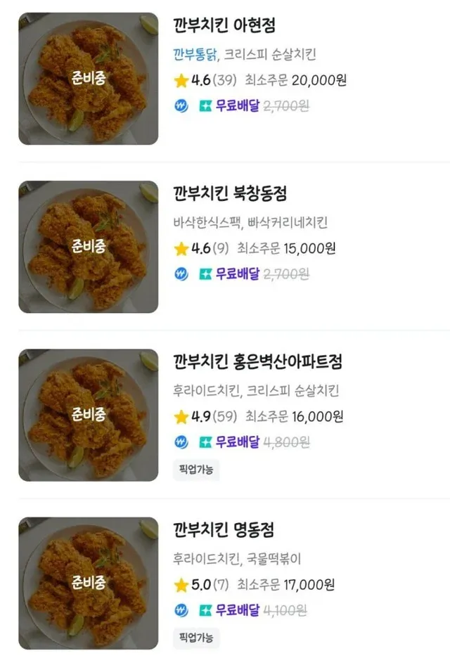 배달도 마찬가지라 다들 막아놓음