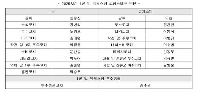 키움히어로즈는 2026시즌 1군 및 퓨처스팀 코칭스태프 구성을 확정했다고 3일 밝혔다.