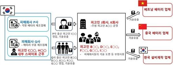 이들은 삼성SDI와 삼성SDI의 1차 협력사에서 근무하면서 얻은 배터리 관련 부품이나 도면 등 국가핵심기술을 유출해 주범인 A씨가 운영하는 코스닥 상장사 주가 부양에 활용하거나 베트남, 중국 등 국외 유출한 혐의를 받고 있다.
