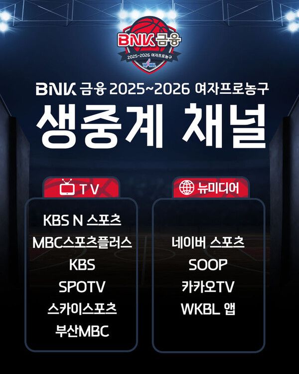 뉴시스 보도에 따르면, 한국여자농구연맹(WKBL)은 4일 BNK금융 2025~2026 여자프로농구 생중계 채널을 공개했다.