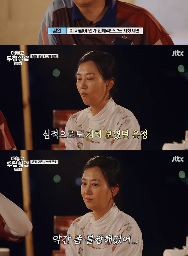 장윤정은 "내가 집에서 표정이 없어진다"며 감정 표현까지 적어졌음을 털어놨고, 도경완은 "이 사람이 신체적으로도 지쳤지만, 그거보다 중요한 게 심적으로도 지친 상태라는 게 느껴졌다. 그래서 (장윤정을 대하는) 내 모드를 바꿔보자고 생각했다. 약간 불쌍해졌다"고 전했다.