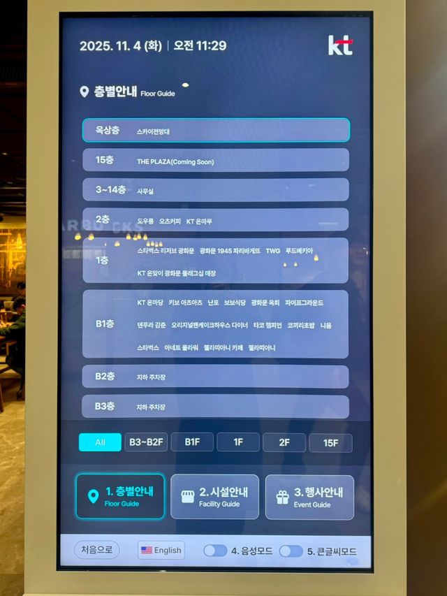 4일 업계에 따르면 올해 KT 광화문 웨스트(KT웨스트) 사옥의 F&B 개발 및 리모델링을 마치며 상층부에는 한화호텔앤드리조트의 ‘더 플라자’(The Plaza) 브랜드가 입점을 준비 중이다. KT웨스트의 층별 안내에 따르면 15층 전체가 ‘더 플라자’로 표기돼 있다. 빌딩은 세종대로 하나만 건너면 세종문화회관과 마주해 있고, 최상층인 15층은 광화문 광장의 전경이 한눈에 들어오는 뷰다.