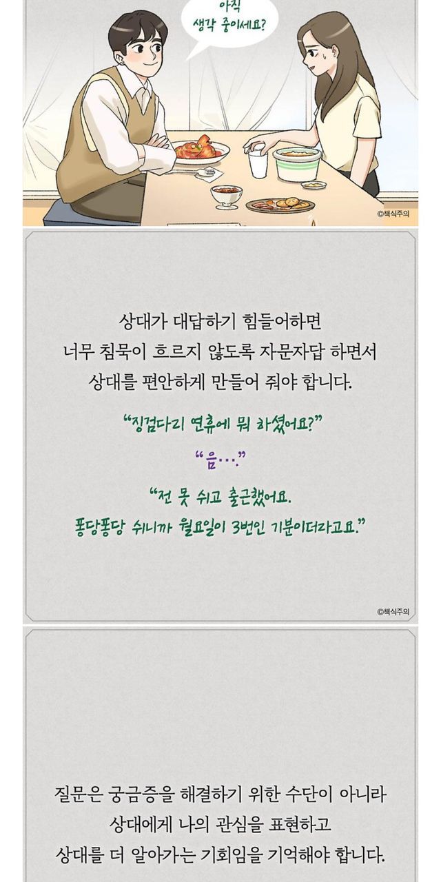 갠적으로 낄끼빠빠랑 동문서답 안하기만 해도 중간은 간다고 생각합니다만 좋은 의견 달아주시면 감사하겠습니다. 꾸벅.