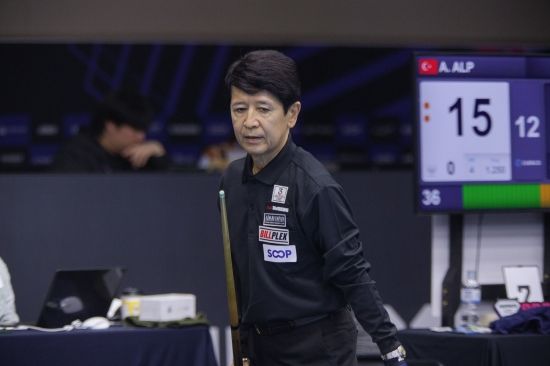 예선 경기에 나선 아라이 다쓰오 선수의 경기 모습은 당구 팬들의 시선을 끌었다.