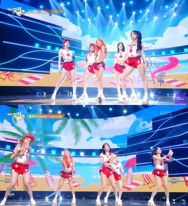 당시 (여자)아이들은 '클락션 (Klaxon)' 활동 중 적십자 표장이 그려진 라이프가드 의상을 입고 KBS 2TV '뮤직뱅크' 무대를 꾸며 논란이 됐다.