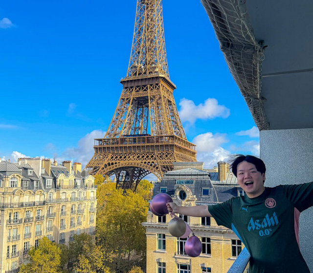 공개된 사진 속 곽튜브는 프랑스 파리의 한 호텔 테라스에서 포즈를 취하고 있다. 에펠탑이 가까이 위치한 탁 트인 뷰가 눈길을 끌었다.