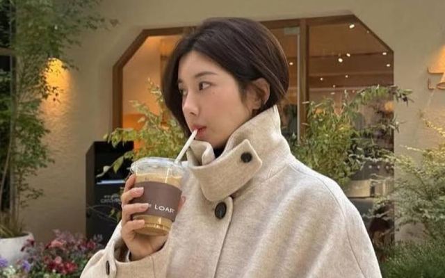 버클 포인트의 아이보리 숏코트를 착용한 슬기. 인스타그램 @hi_sseilgi