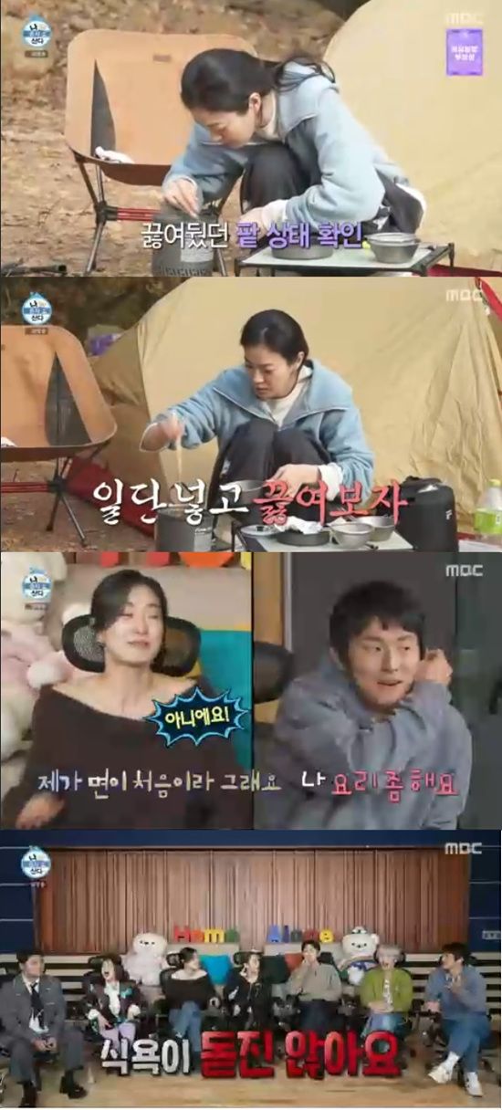 옥자연은 팥을 담은 통에 물을 넣고 끓여 궁금증을 자아냈는데 캠핑 로망인 팥칼국수를 해먹을 것이라고 했다.