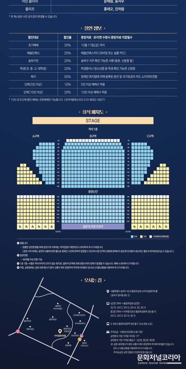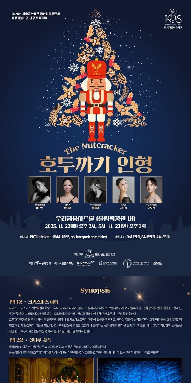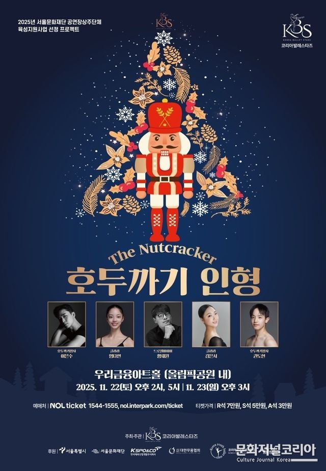 한편 코리아발레스타즈의 '호두까기인형'은 11월 22일 토요일 오후 2시와 5시, 23일 일요일 오후 3시에 공연되며, 공연시간은 인터미션 20분을 포함한 120분이다. 차이콥스키의 아름다운 음악과 함께 펼쳐지는 이번 공연은 온 가족 단위 관객은 물론 발레 팬들에게도 잊지 못할 감동을 선사할 것으로 기대된다. 티켓은 인터파크 티켓(ticket.interpark.com)에서 예매할 수 있으며, 관람료는 R석 7만원, S석 5만원, A석 3만원이다.