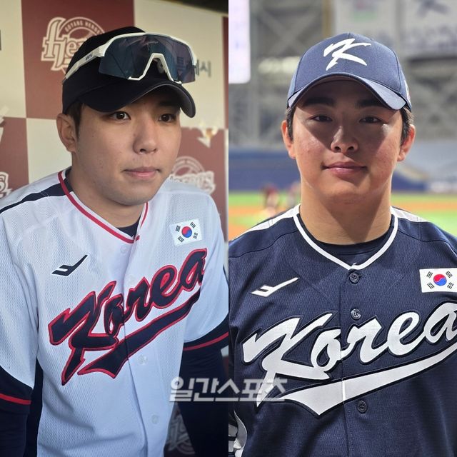 불과 며칠 전까지만 해도 치열하게 창 끝을 겨눴던 선수들이다. 하지만 국가대표팀에선 달랐다. 치열했던 '대포 대결'은 뒤로 하고, 이젠 한솥밥을 먹으며 다가오는 평가전을 준비하고 있다. 외야수 문현빈(21·한화 이글스)과 김영웅(22·삼성 라이온즈)의 이야기다.