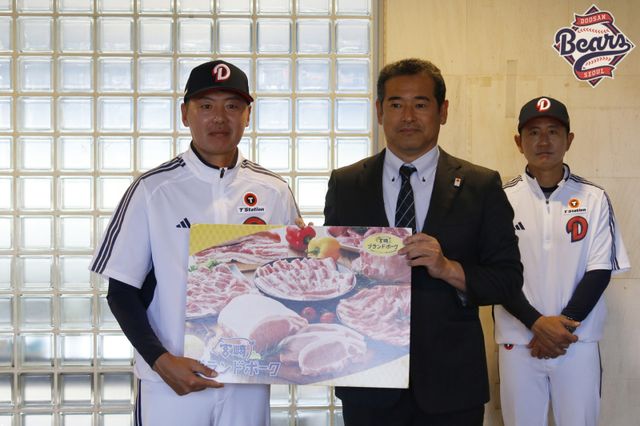 일본 미야자키현 관계자들은 6일(목) 두산베어스의 마무리 캠프가 진행 중인 아이비 스타디움을 찾아 각종 고기를 선물했다.
