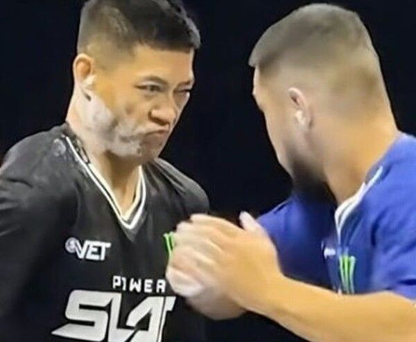 세계 따귀 때리기 대회 '파워 슬랩'에서 중국 참가자의 광대뼈가 부러져 충격을 주고 있다.