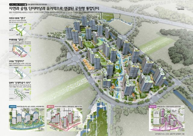 한남대학교 건축학과 백한열 교수는 “본 설계안은 다양한 주동의 조합을 통한 안정적이고 실용적인 공간 배치가 인상적”이라며 “단지 중앙에 넓은 커뮤니티 광장이 배치돼 있으며, 이를 통해 대상지 내외부를 자연스럽게 연결하고 있다”고 평가했다. 이어 “입면은 다양한 주동의 형태와 평면에 따라 다양하게 계획했으며, 이를 통해 획일적이고 단편적인 공동주택의 이미지를 탈피하고 있다”고 설명했다.