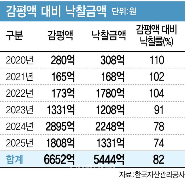 한편에서는 반복되는 ‘헐값 매각’ 가능성을 차단하기 위해 최저 낙찰가율 수준에 대한 의견 수렴과 상향 여부를 고민해봐야 한다는 의견도 제기된다. 우석진 명지대 경상·통계학부 교수는 “윤석열 정부 들어 유휴·저활용 국유재산 매각 활성화 방안이 추진되면서 일부 부지가 초기 감정가의 50% 수준에 팔리고 있다”며 “법적으로 정해진 최저 낙찰가율을 높이는 등 제도 개선이 필요하다”고 지적했다.