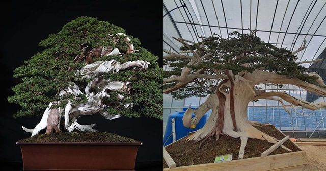 이 분재는 죽어 있는 부분이 1000년이 넘었음에도 썩지 않았으며, 살아 있는 부분 역시 1000년 이상을 견뎌온 것으로 알려졌다. 현재 관람객들에게 가장 인기 있는 작품 중 하나지만, 보호와 관리가 더 필요해 일반 관람객에게는 보호실에서만 공개되고 있다. 조금 더 회복되면 일반에게 공개될 예정이다.