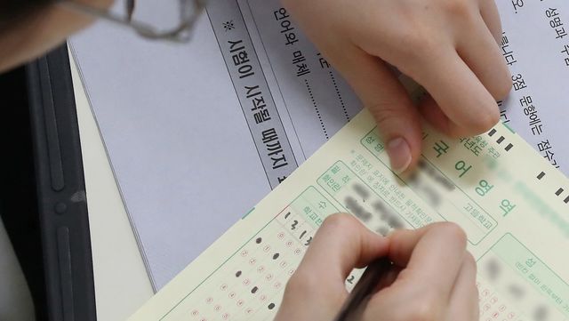 2025학년도 7월 고3 전국연합학력평가가 치러진 지난 7월 10일 한 고등학교 고3 학생이 수험생 정보와 필적 확인 문구를 작성하고 있는 모습. / 뉴스1