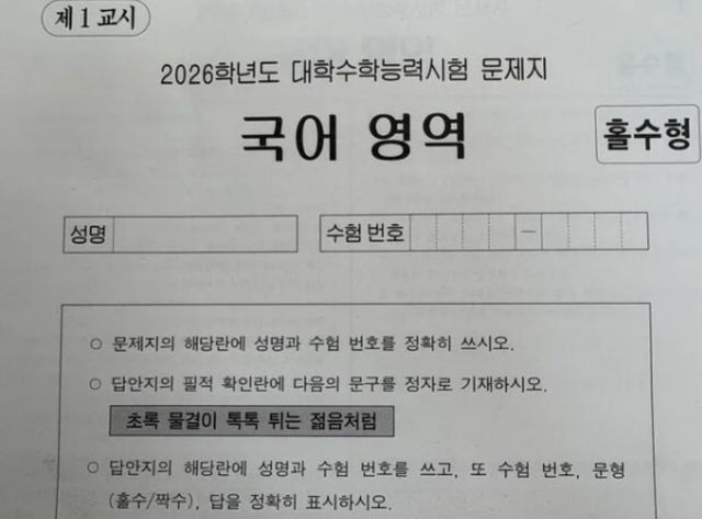 2026학년도 대학수학능력시험 국어 영역 문제지 모습. / 뉴스1-조수빈 기자