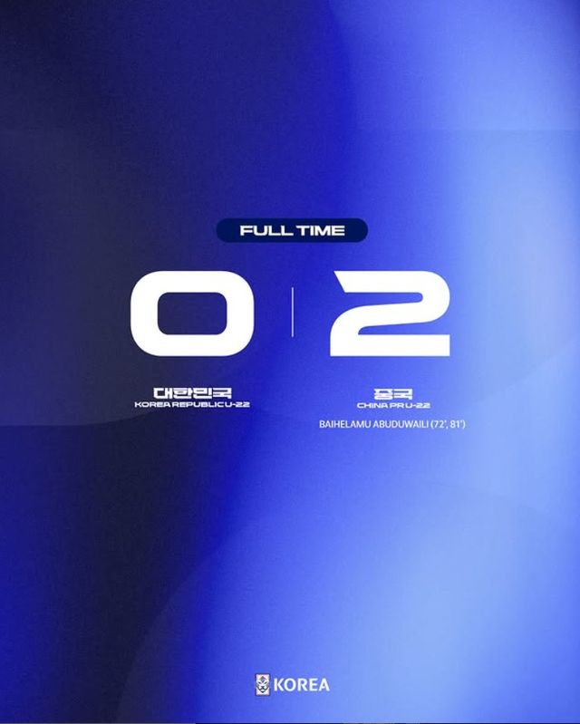 이민성호는 15일 중국 청두에 위치한 솽류스포츠센터에서 열린 중국 U-22 축구 국가대표팀과의 판다컵 2025 2차전에서 0-2 충격패를 당했다.