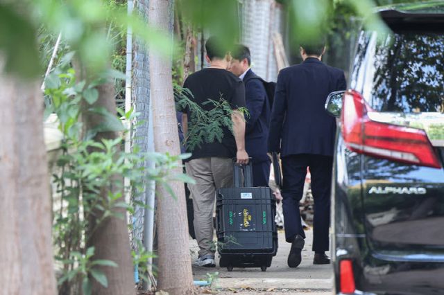 우리나라 국립과학수사연구원(국과수) 법의관 및 경찰 수사관들이 지난달 20일(현지시간) 캄보디아에서 범죄조직에 납치돼 피살당한 한국인 대학생 박모 씨의 공동부검 참석을 위해 시신이 안치된 캄보디아 프놈펜 턱틀라사원에 도착해 안치실로 이동하고 있다. (사진=연합뉴스)
