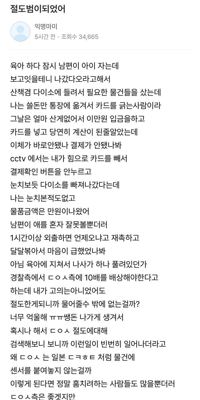 다이소에서 실수로 결제 안 하고 가서 절도 고소당한 사람