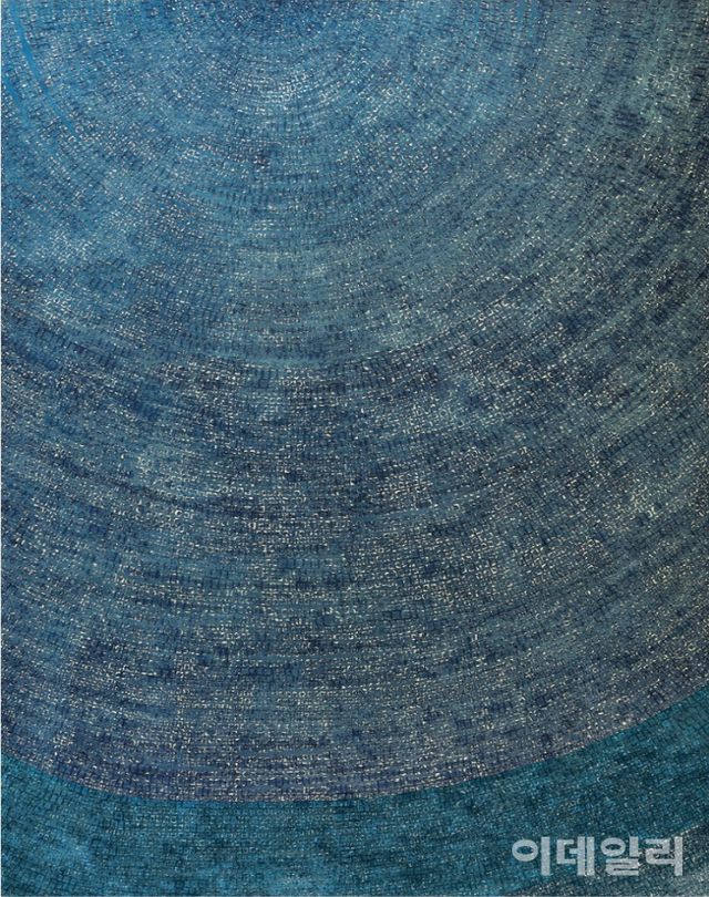 김환기의 전면점화 연작은 화백이 생애 마지막까지 몰두한 형식이다. 화면 전체를 점으로 찍어 완성해 전면점화로 불리는데, 점에 얹은 색·리듬의 변주를 통해 ‘우주’와 ‘존재’라는 궁극적인 화두에 가닿으려 했다. 말기로 갈수록 방대하고 심오하게 박아낸 푸른색은 김환기에게는 가장 상징적인 색으로 꼽힌다. 생전 고향 전남 신안의 푸른 바다와 푸른 하늘에서 영감을 받았다고 고백하기도 했다.