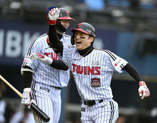 2023 KBO 프로야구 포스트시즌 LG트윈스와 kt위즈의 한국시리즈 5차전 경기가 13일 오후 서울 잠실야구장에서 열렸다. 4회초 2사 1,2루 박해민이 대타 김민혁의 안타성 타구를 다이빙캐치로 잡아낸 후 환호하며 더그아웃으로 들어가고 있다. 잠실=김민규 기자 mgkim1@edaily.co.kr /2023.11.13/