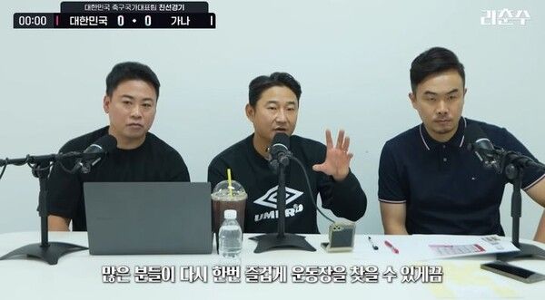 뉴시스 보도에 따르면, 19일 축구 국가대표 출신 이천수는 자신의 유튜브 채널 '리춘수'에 '진짜 정신 차려야 된다고'라는 제목의 영상을 올렸다. 영상에는 이천수가 강성주 해설위원, 이황재 해설위원과 실시간으로 가나전을 보며 이야기를 나눈 모습이 담겼다.