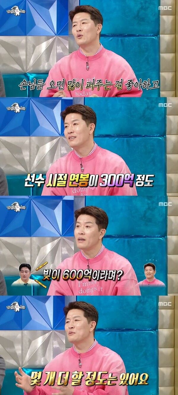 김병현은 "선수 시절 연봉이 300억원 정도 됐다. 안정환 형님이 방송 중에 얘기한 게 있는데 이후에 빚이 있다고 기사가 났다"고 말했다.