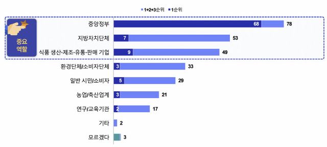 응답자들은 저탄소 식단 확산의 책임 주체로 중앙정부(54%)를 1순위로 꼽았다. (사진=기후솔루션)