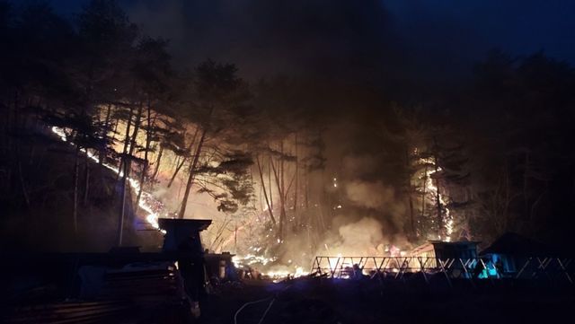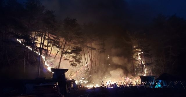21일 산림당국에 따르면 전날 오후 5시23분께 산 아래 컨테이너 인근에서 시작된 불이 산으로 옮겨 붙으며 빠르게 확산됐다. 초기 진화 과정에서 현장과 가까운 현1리 주민 8명이 인근 경로당으로 대피했으며 현재까지 다른 인명 피해는 없는 상태다.